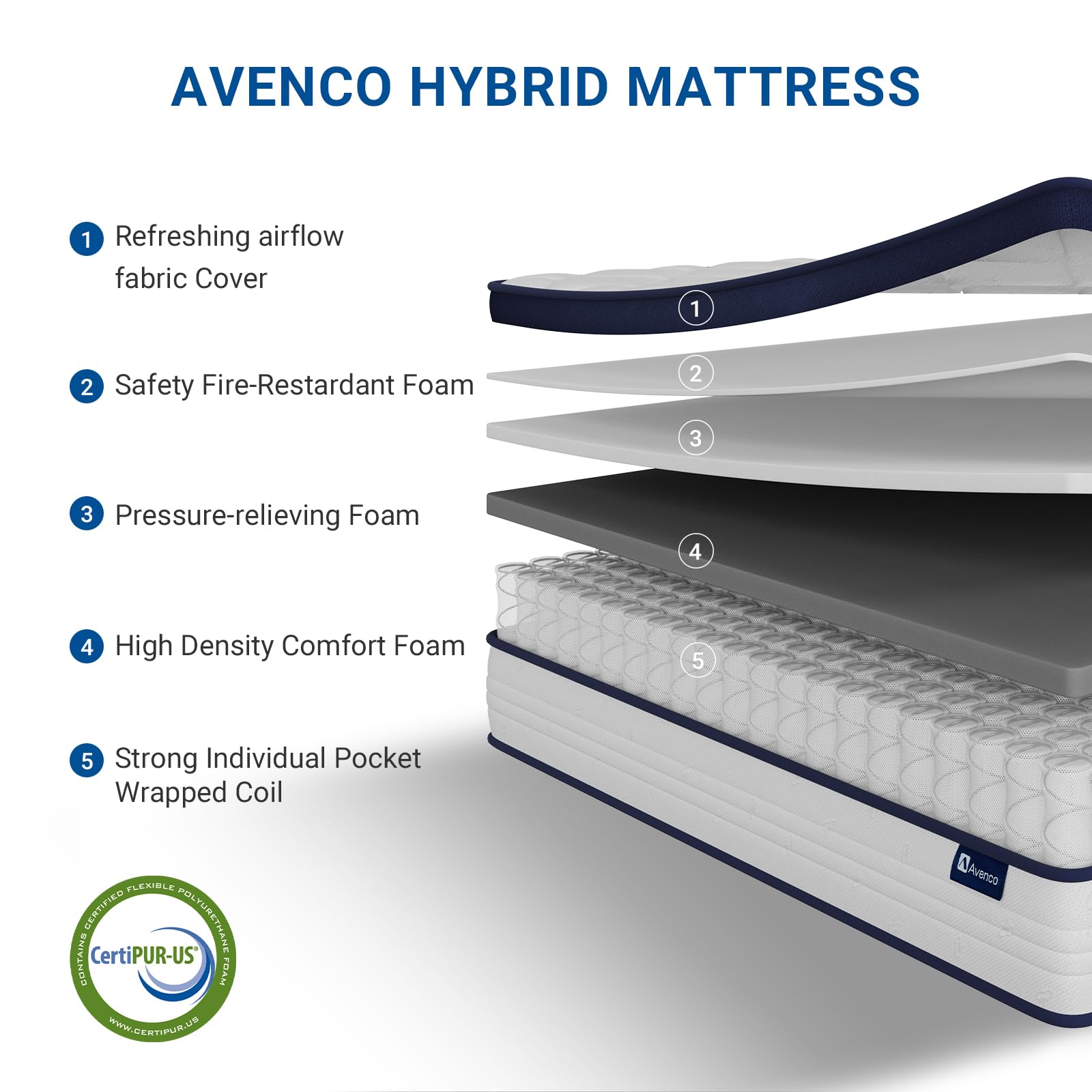 - King Bed Mattress in a Box: Avenco hybrid king size mattress is vacuum-compressed and packaged in a compact box for easy delivery. Easy to setup and fits all kinds of king bed frames, even on the floor. Mattress is recommended 72 hours for air out and reshape