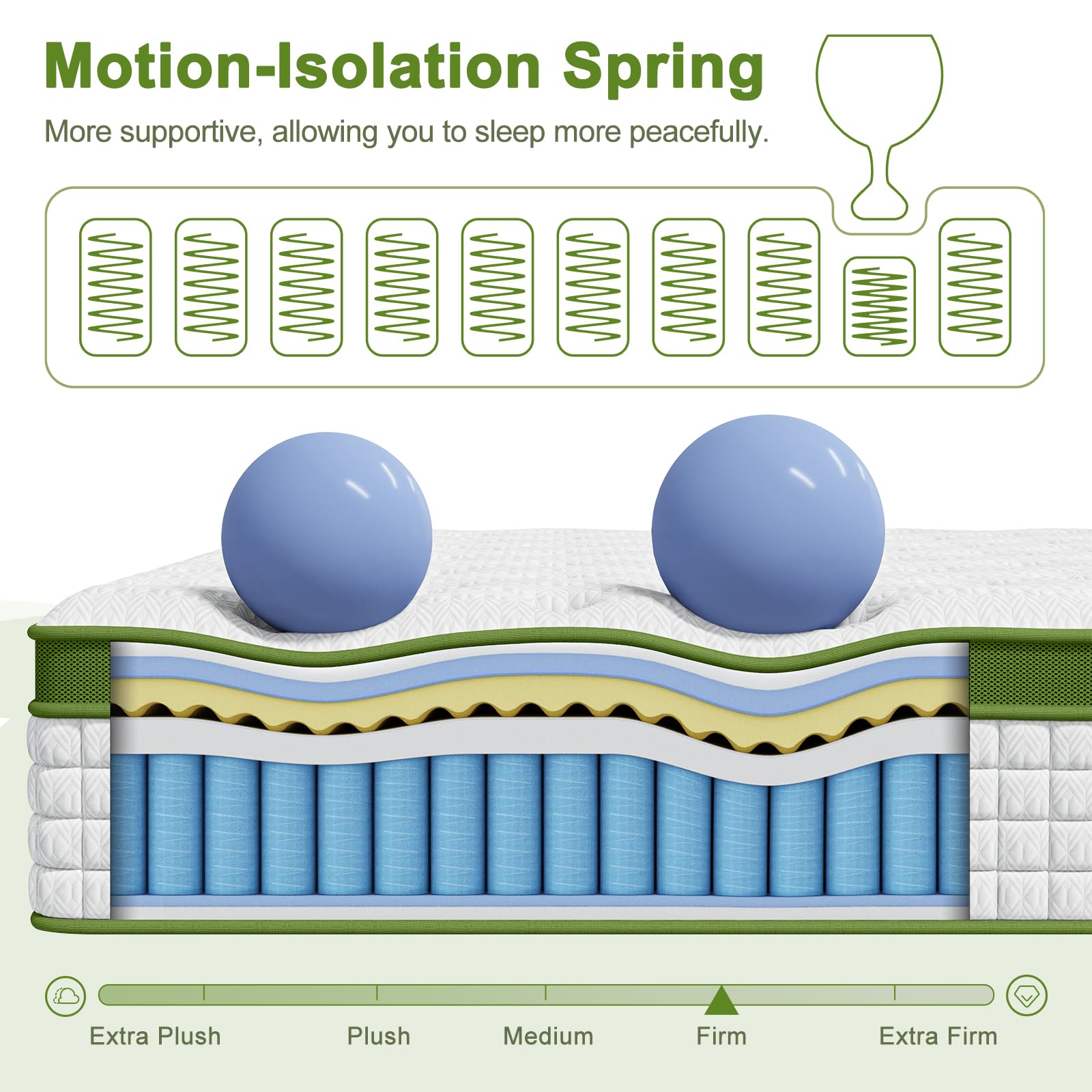 - Pocket Coil Hybrid Design: Hundreds of individually wrapped coils respond independently to body movement and deliver zoned support to 7 key areas: head, neck, shoulders, waist, hips, legs, and feet. This pocket spring system reduces motion transfer, ensuring restful sleep for couples.