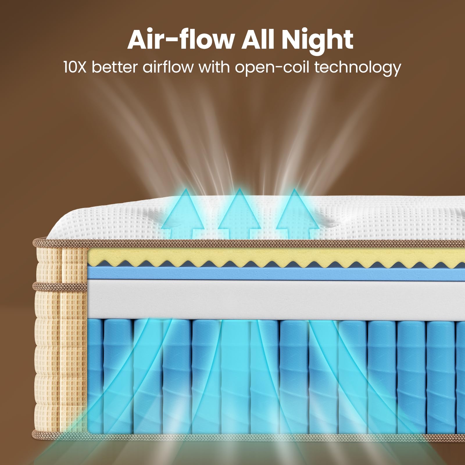 - Balance Support & Pressure Relief:The hybrid mattress queen size construction combines the support of pocket springs with the comfort feel of premium foam layers, aintain natural spine curvature, and alleviate pressure for optimal sleep posture. Meanwhile, spring gaps facilitate air circulation, reducing heat build-up and ensuring a cool surface for enhanced comfort during sleep