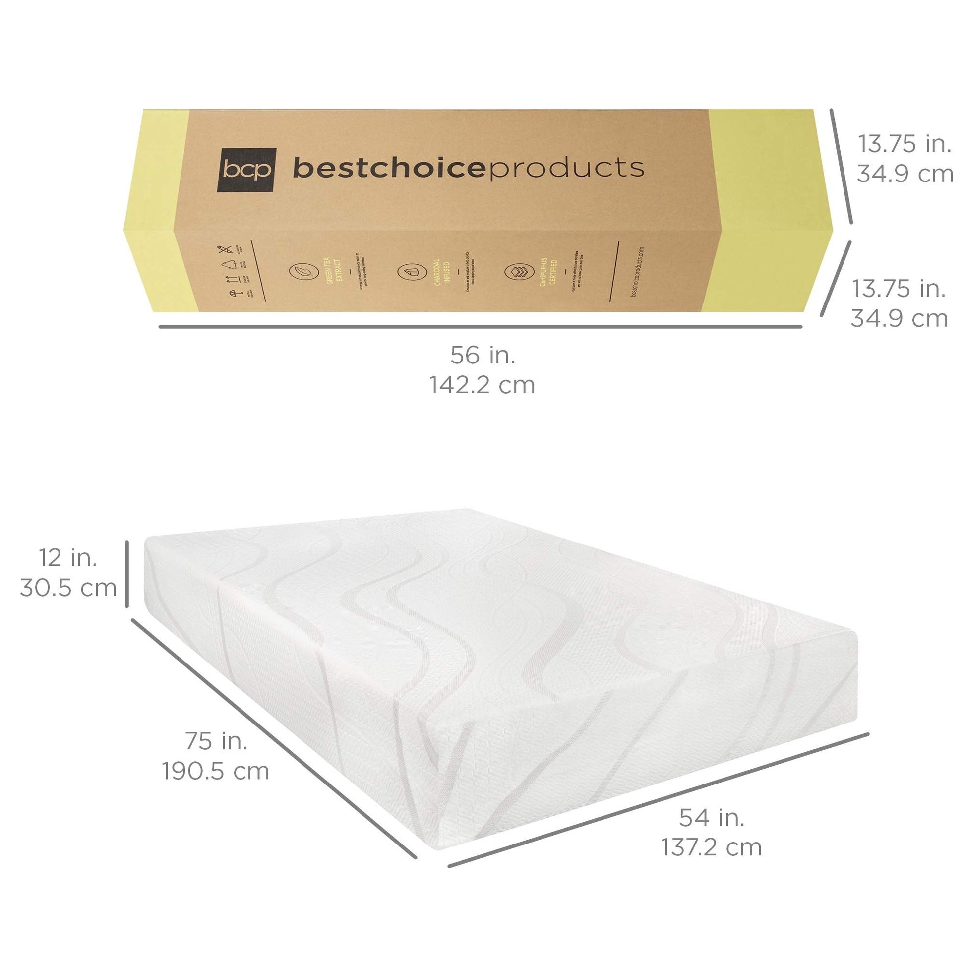 - READY TO USE: This mattress arrives rolled and compressed for easy setup and a comfortable rest right out of the box. Foam meets CertiPUR-US standards for content, emissions, and durability, and are analyzed by independent, accredited testing laboratories.; Full Size: 75"(L) x 54"(W) x 12"(Thick) Queen Size: 80"(L) x 60"(W) x 12"(Thick) King Size: 80"(L) x 76"(W) x 12"(Thick)