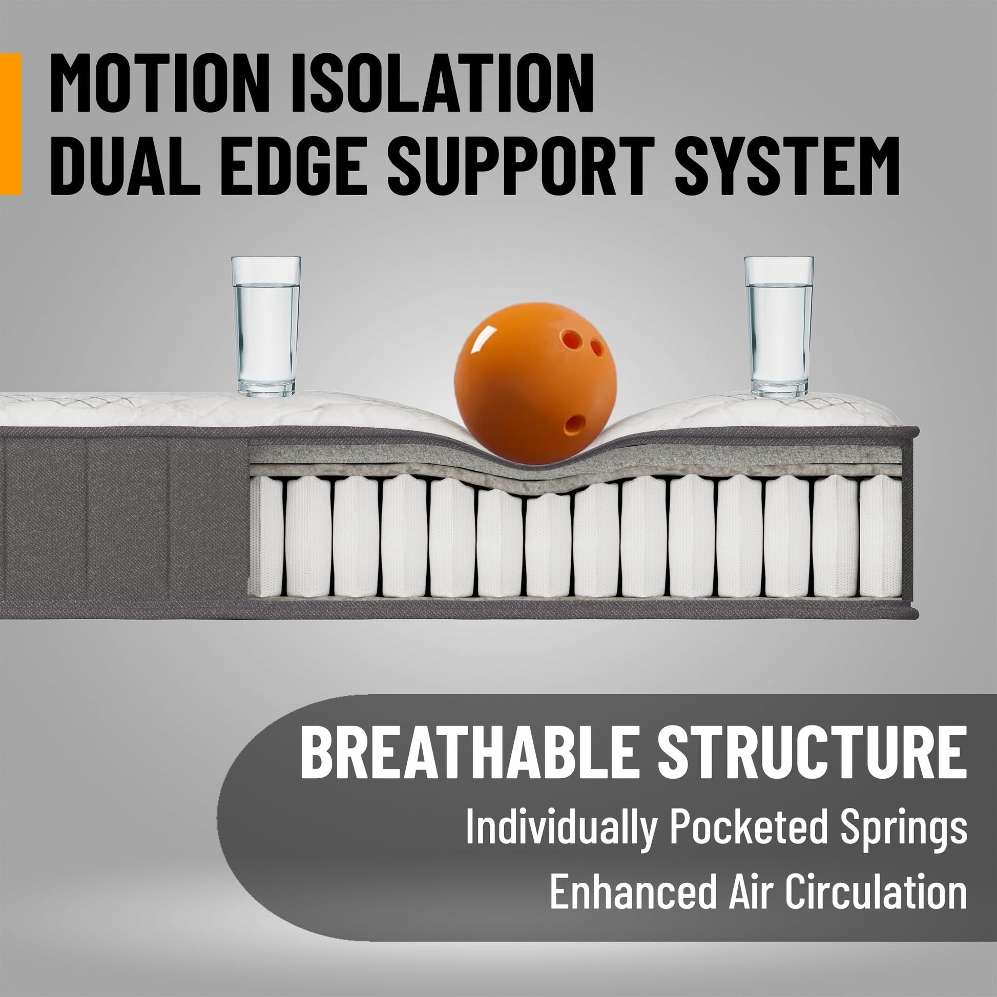- 2. Enhanced Comfort: The hybrid design combines the adaptive comfort of foam with the responsive support of pocket coils, creating a perfect balance of pressure relief and spinal alignment for all sleeping positions.