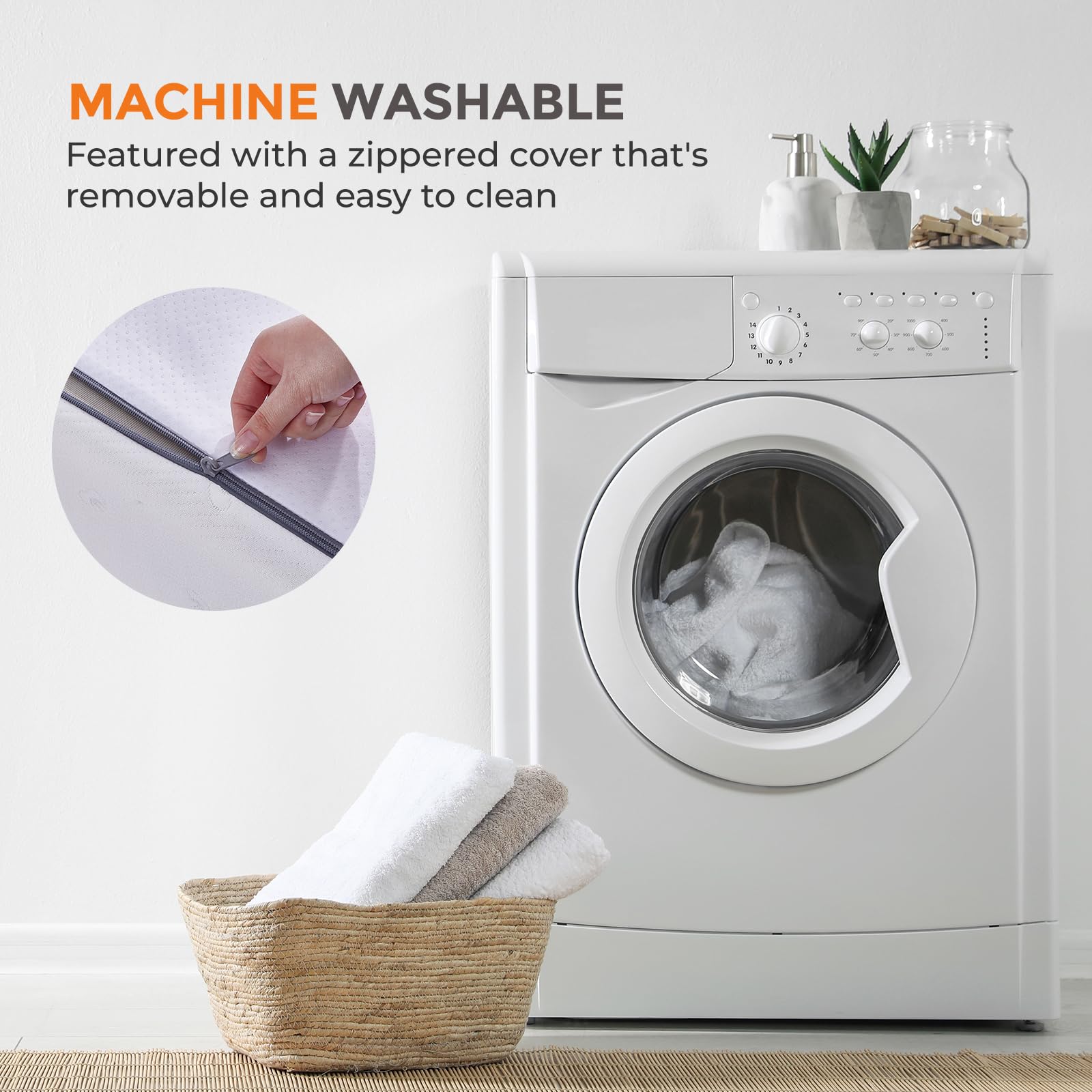 - Hypoallergenic & Breathable: Wrapped in a soft, removable cotton cover that's gentle on sensitive skin and promotes airflow to keep you cool and comfortable throughout the night