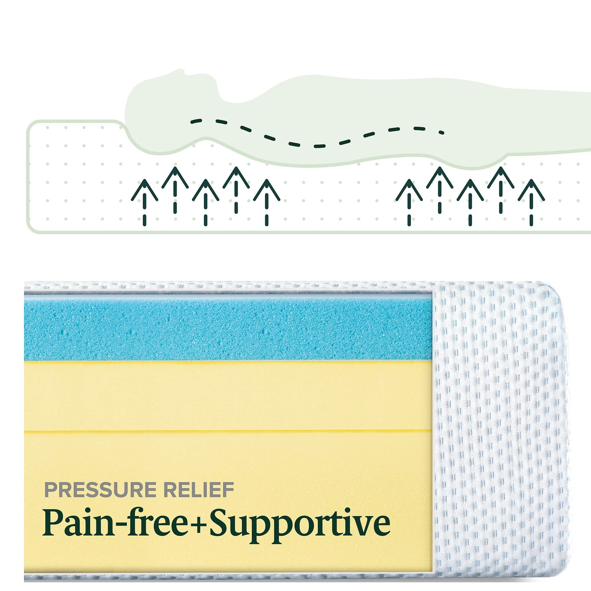 - COOLER SLEEP AND A CLEANER PLANET – Topped with soothing gel memory foam, this mattress is designed to help keep you cool and comfortable throughout the night, and ships in a new smaller box to support a reduced carbon footprint